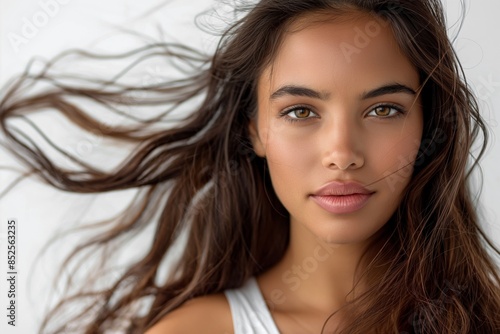 Reflective mood of Brazilian model with shiny, well-nourished hair
