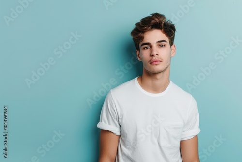 Relaxed Young Man Against Light Blue Background for Lifestyle and Fashion