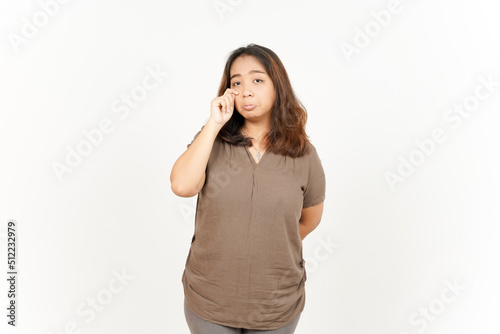 Sad and Cry of Beautiful Asian Woman Isolated On White Background
