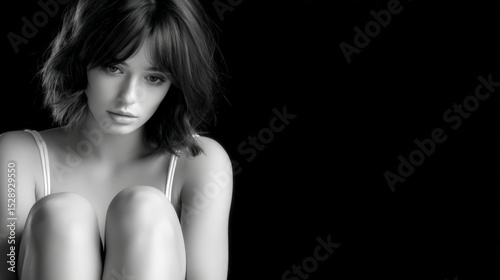 Sad Woman Depression Anxiety Mental Health Black and White Portrait