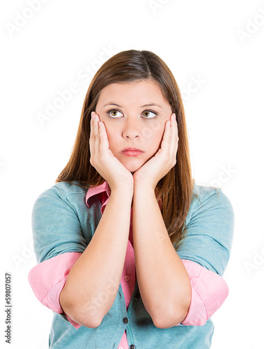 Sad woman daydreaming looking up
