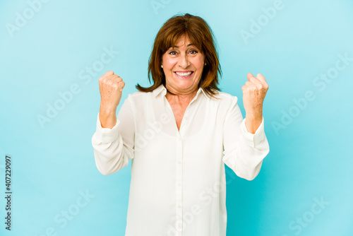 Senior caucasian woman isolated cheering carefree and excited. Victory concept.