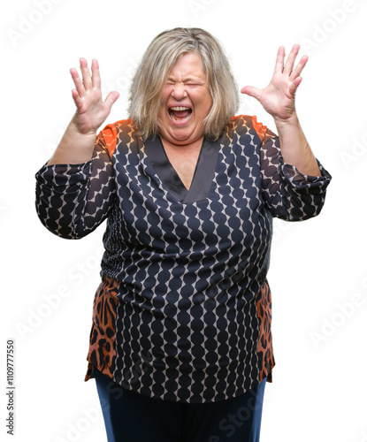 Senior plus size caucasian woman over isolated background celebrating crazy and amazed for success with arms raised and open eyes screaming excited. Winner concept
