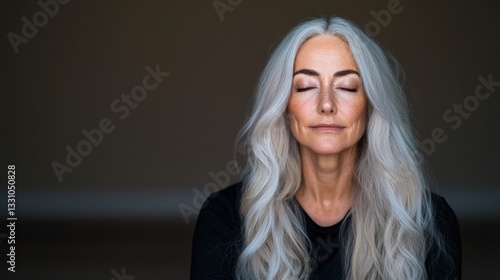 Serene Mature Woman Gray Hair Yoga Studio Mindfulness Peace
