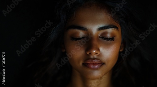 Serene Young Indian Woman Enjoying Peaceful Moment in Studio