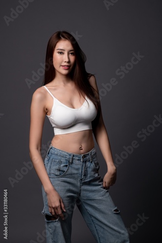 Sexy asian girl model, woman body contour, beautiful sexy asian