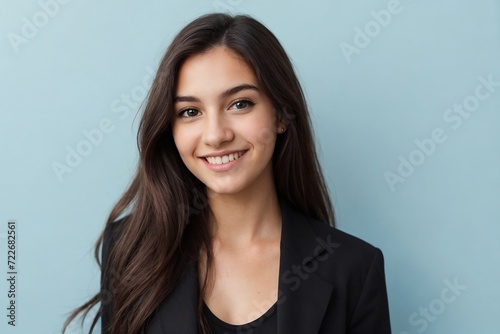 Sexy Uruguayan woman standing against a blue background with copy space.