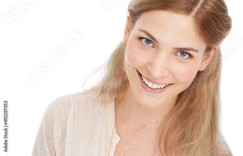 Shes got a carefree spirit. Studio portrait of an attractive young woman isolated on white.