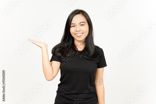 Showing and Presenting Product on Open Palm of Beautiful Asian Woman Isolated On White Background
