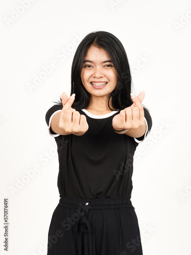 Showing Korean love finger Of Beautiful Asian Woman Isolated On White Background