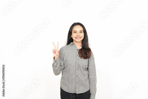 Showing Peace or Victory Sign Of Beautiful Asian Woman Isolated On White Background