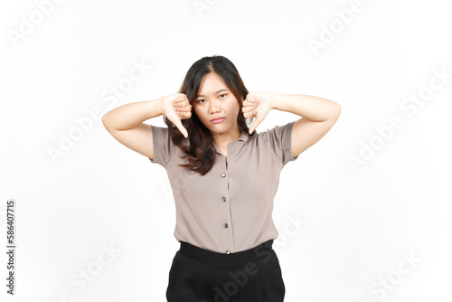 Showing Thumbs Down Of Beautiful Asian Woman Isolated On White Background