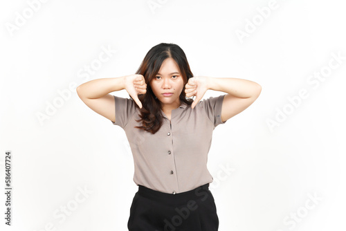 Showing Thumbs Down Of Beautiful Asian Woman Isolated On White Background