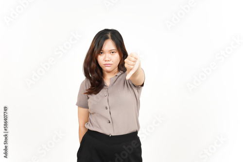 Showing Thumbs Down Of Beautiful Asian Woman Isolated On White Background