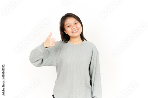 Showing Thumbs Up Of Beautiful Asian Woman Isolated On White Background
