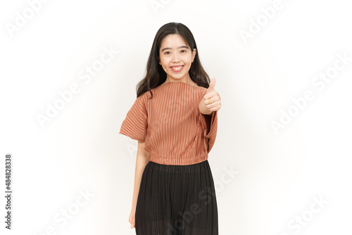 Showing Thumbs Up Of Beautiful Asian Woman Isolated On White Background