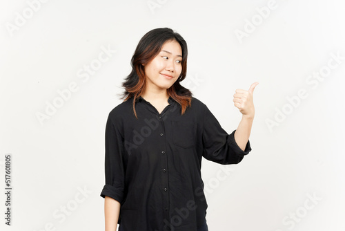 Showing thumbs up of Beautiful Asian Woman Isolated On White Background