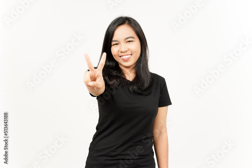 Showing two finger of Beautiful Asian Woman Isolated On White Background