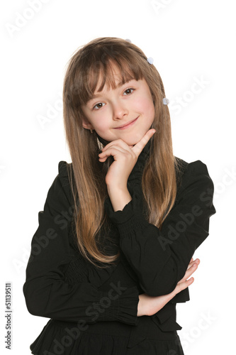 Shy young girl in black