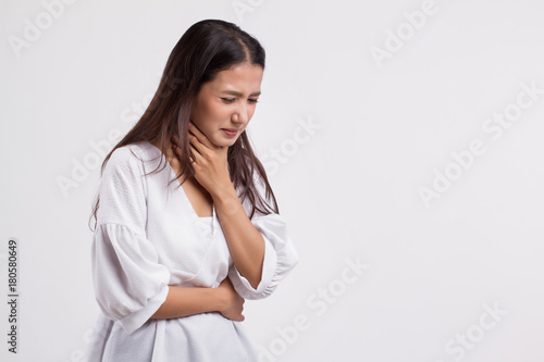 sick asian woman with sore throat, cold, flu