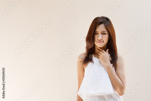 sick woman with sore throat, inflammation with blank area
