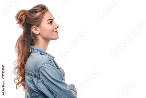 Side view of smiling woman isolated on white background