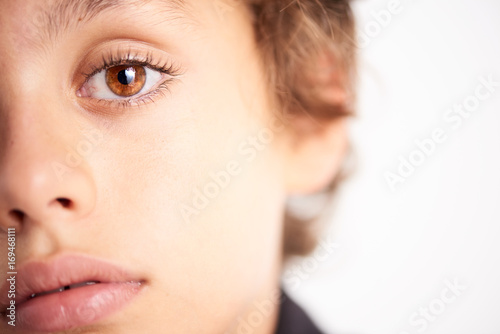 Slightly tired kid looking at camera