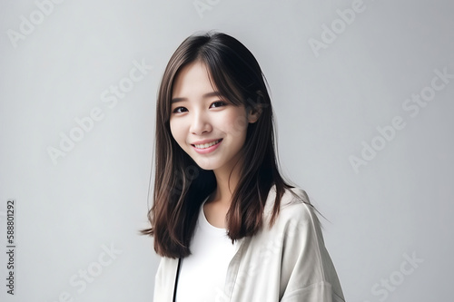 Smart Casual Office Shirt uniform Girl Teenager - Adult stands in front of White Background. generative AI