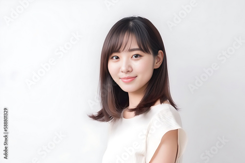 Smart Casual Office Shirt uniform Girl Teenager - Adult stands in front of White Background. generative AI