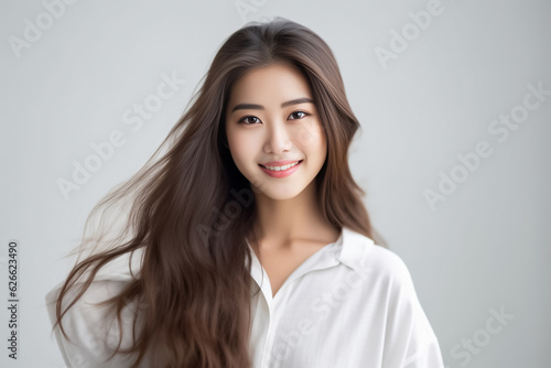 Smart Casual Office Shirt uniform Girl Teenager - Adult stands in front of White Background. generative AI