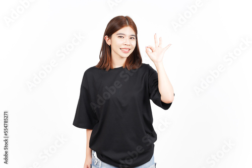 Smiling and Showing OK Sign Of Beautiful Asian Woman Isolated On White Background
