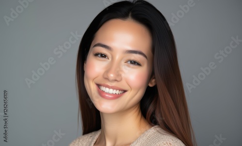 Smiling Asian woman with long hair
