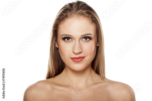 smiling beautiful blonde on a white background