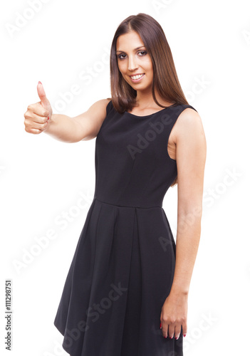 Smiling beautiful woman with thumbs up gesture, isolated on whit