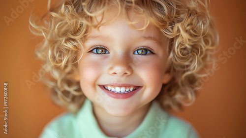 Smiling Blonde Curly-Haired Child with Bright Eyes
