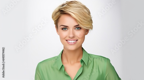Smiling businesswoman in her forties. A confident female professional in smart casual attire is isolated on a white background.. generative ai