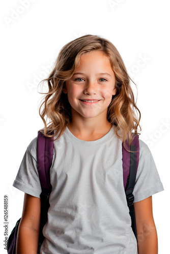 Smiling Child of Backpack and White T -Shirt