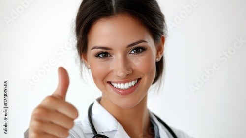 Smiling Female Doctor Giving Thumbs Up: Healthcare Professional Showing Approval and Positivity