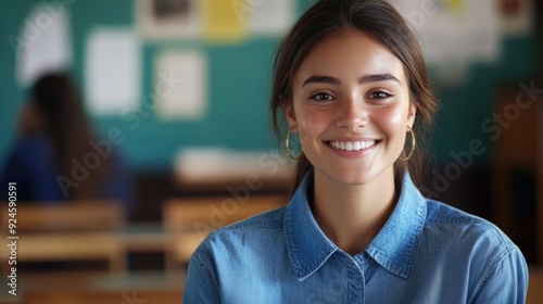 Smiling Female Student in Classroom