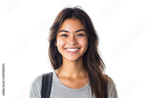 Smiling girl in t-shirt isolated on white or transparent, PNG