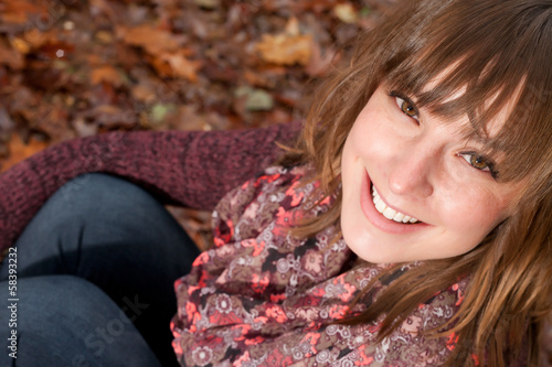 Smiling girl on the autumn ground