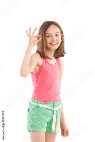 Smiling girl showing ok sign