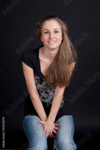 Smiling girl sitting on a stool