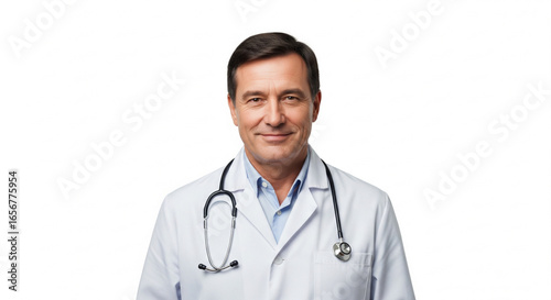 Smiling Male Doctor Portrait with Stethoscope - Confident Healthcare Professional Isolated on White