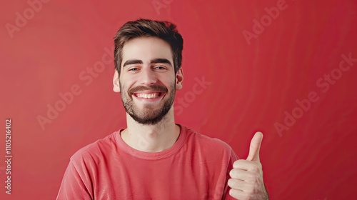 Smiling Man Giving Thumbs Up, on a solid color background.