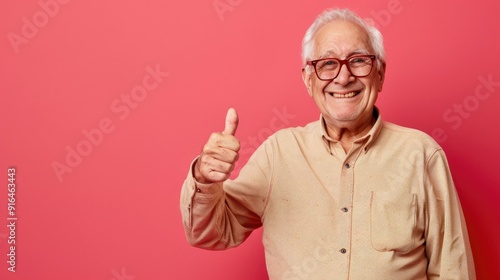Smiling Man Giving Thumbs Up, on a solid color background.