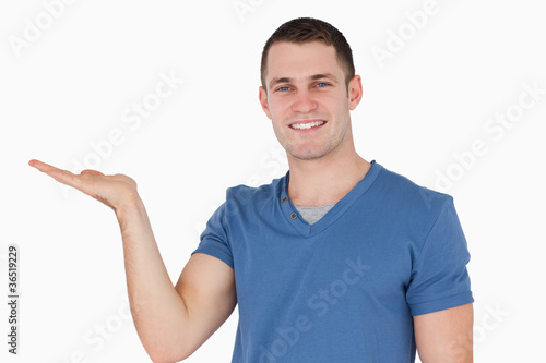 Smiling man holding something
