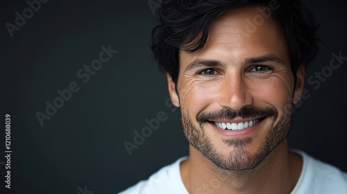 Smiling Man with Dark Hair and Full Beard Against Dark Background
