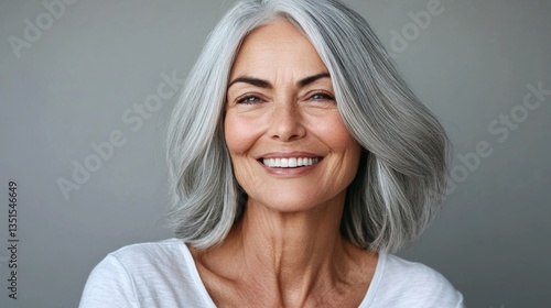 Smiling Mature Woman with Gray Hair Portrait Photography, Close-up, Natural Beauty Gray hair, mature woman, portrait photography