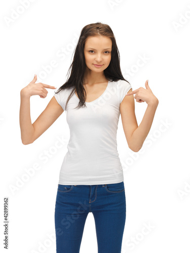 smiling teenage girl in blank white t-shirt